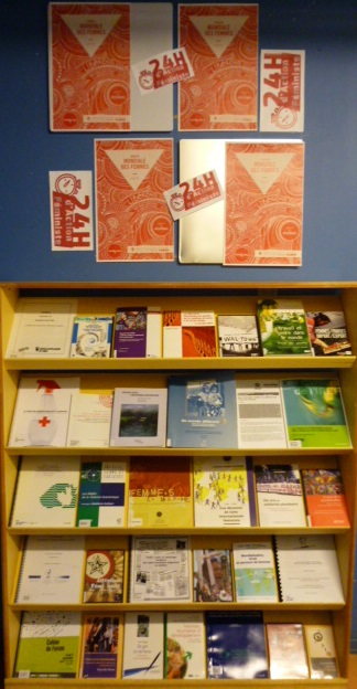 Dans le cadre des 24 heures d'actions féministes, le Cdeacf a réalisé ce présentoir de lecture sur le travail des femmes et la mondialisation.