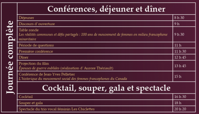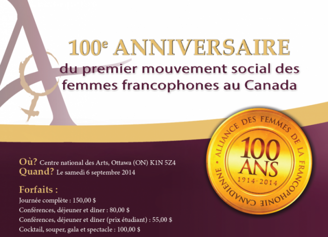 Tweeter Par courrielDate: 6 Septembre 2014 - 04h00 - 7 Septembre 2014 - 03h59En savoir davantage: http://www.affc.ca/100ans -> Pour s'inscrire Coordonnées: Centre national des Arts 53, rue Elgin Ottawa, ON K1P 5W1 Canada