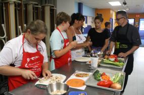 Chez Toujours ensemble, l’expérience s’est faite sur la dernière semaine de juin et la première de juillet, dans la cuisine où sont habituellement réalisés les dîners scolaires. Quatre groupes de deux puis cinq familles ont participé aux trois ateliers de 120 minutes chacun.