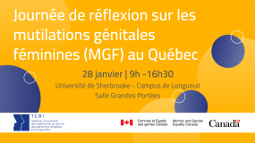 Le Volet femmes de la Table de concertation des organismes au service des personnes réfugiées et immigrantes a le plaisir de vous inviter à une Journée de réflexion sur les mutilations génitales féminines/excision (MGF/E) au Québec le 28 janvier 2020 de 9h à 16h30 au Campus de Longueuil de l'Université de Sherbrooke (sortie du Métro Longueuil).
