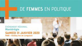 Le 31 janvier prochain, la Table de concertation des groupes de femmes de la Montérégie (TCGFM), en collaboration avec la Commission Femmes et gouvernance de l’Union des municipalités du Québec (UMQ) organise l’événement régional « Plus de femmes en politique » au Holiday Inn de Longueuil.