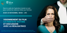 Dans le cadre de l'Opération Tendre la main, la campagne annuelle de l'Afeas pour sensibiliser et lutter contre les violences faites aux femmes, nous sommes fières de vous convier à cette activité de visionnement du documentaire LA PARFAITE VICTIME, qui aborde les échecs du système judiciaire en matière d'agression. Nous aurons ensuite la chance de nous entretenir avec une des réalisatrices du film, Mme Monic Néron.